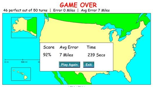 Getting Nebraska “we’re the anchor of nowhere” state as the first one to play was enough to throw my score so that I had 7 error miles left at the end.