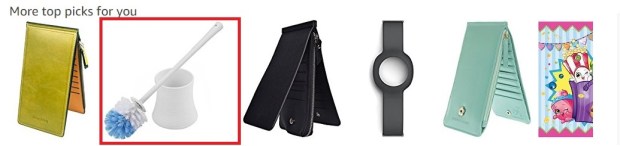 - Hey, so Amazon, why the hell is this thing a “top pick” for me? Since when have I expressed any interest in toilet brushes? I like how Amazon’s algorithm picked up on the one time I accidentally clicked on a bath bomb and extrapolated to toilet brushes, but I can look at 60% of the Leibniz books that Amazon sells and still not get any Leibniz-related recommended items.