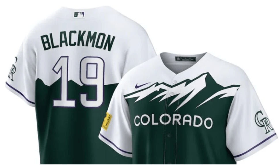 I like how they just put the license plate design on a jersey, haha. I wish this was purple because I love the Rockies’ purple, but I guess green fits better for the design. The hat’s a little off, though. But very Colorado.