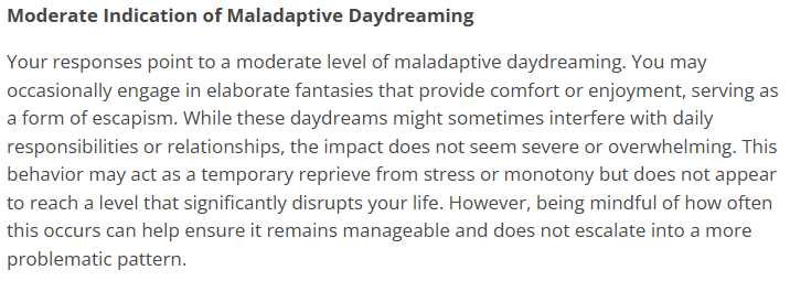 Maladaptive Daydreaming Test (I’m surprised this isn’t worse)