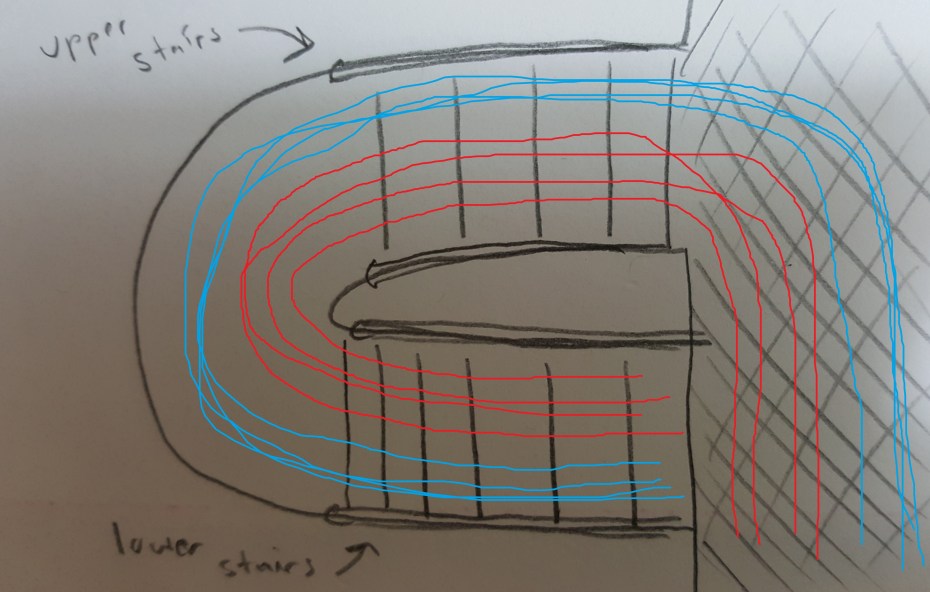 Let’s represent the flow of people going from campus to the C-Train in red, and let’s represent the flow of people going from the C-train to campus in blue. Am I insane for thinking that this is the best way that people should arrange themselves?