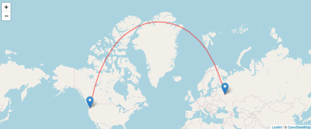5,315 miles is approximately the great circle distance between Portland, Oregon to Moscow, Russia or between Lisbon, Portugal and Cape Town, South Africa.