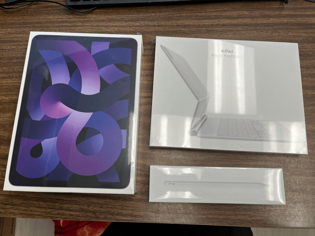 I got an iPad Air (in purple), a Magic Keyboard, and an Apple Pencil.