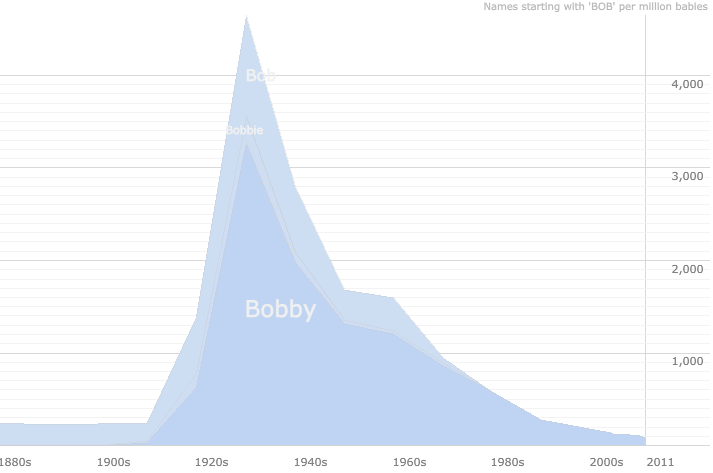 Robert/Roberto and Bob/Bobbie/Bobby trends for boys over the past century or so.
