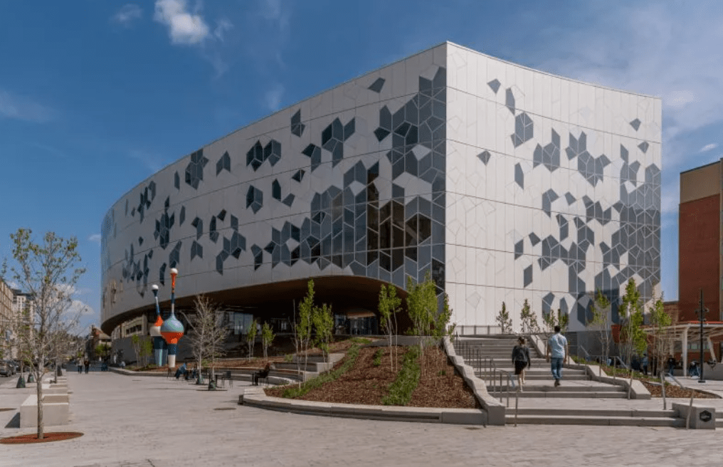 Brutalist architecture emerged as an architectural style in the UK in the 1950s and is characterized by structures that showcase raw building material (like unpainted concrete, steel, and timber), monochrome colors, and angular shapes. I stumbled upon this style when looking up Edmonton’s equivalent of Calgary’s Central Library.