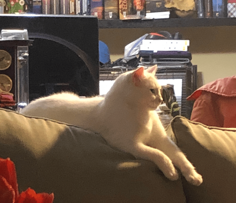 So Pepper is an exceptionally pretty cat. Jazzy was gorgeous too, but I think because her coloring was so dark it didn’t show up very well in photos. Pepper, on the other hand, basically glows because she’s so white (and also sits still for pictures, unlike Jazzy), so her prettiness shows up very nicely. Observe!