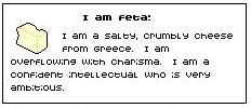 Also, here’s a quiz that told me what type of cheese I am. I’ve posted this before, but it was long ago and my cheesy ways have changed (I used to be brie).