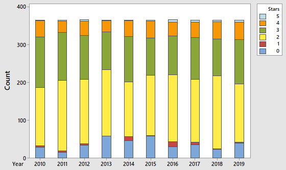 Ratings (stars) by year.