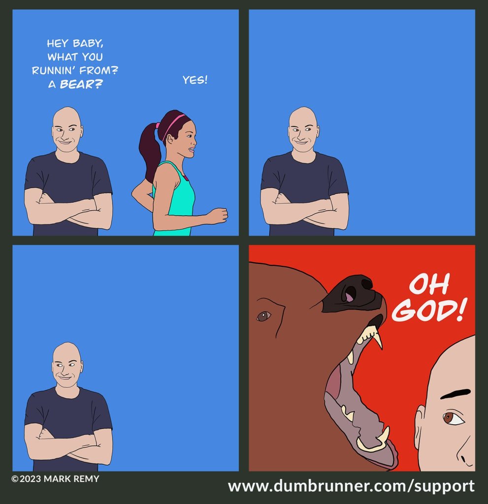 Edit: HAHAHAHA oh my god this is exactly how it was when I bit it on my run last June and screwed up my Sartorius. This is the funniest thing I’ve ever seen, holy crap.