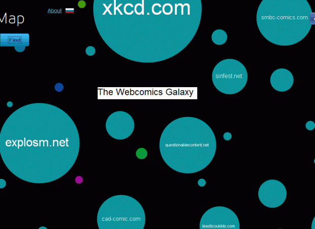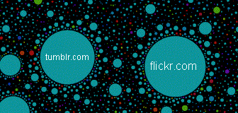 “The Internet map is a bi-dimensional presentation of links between websites on the Internet. Every site is a circle on the map, and its size is determined by website traffic, the larger the amount of traffic, the bigger the circle. Users’ switching between websites forms links, and the stronger the link, the closer the websites tend to arrange themselves to each other.”