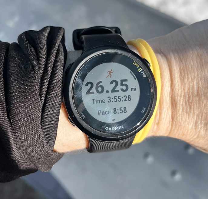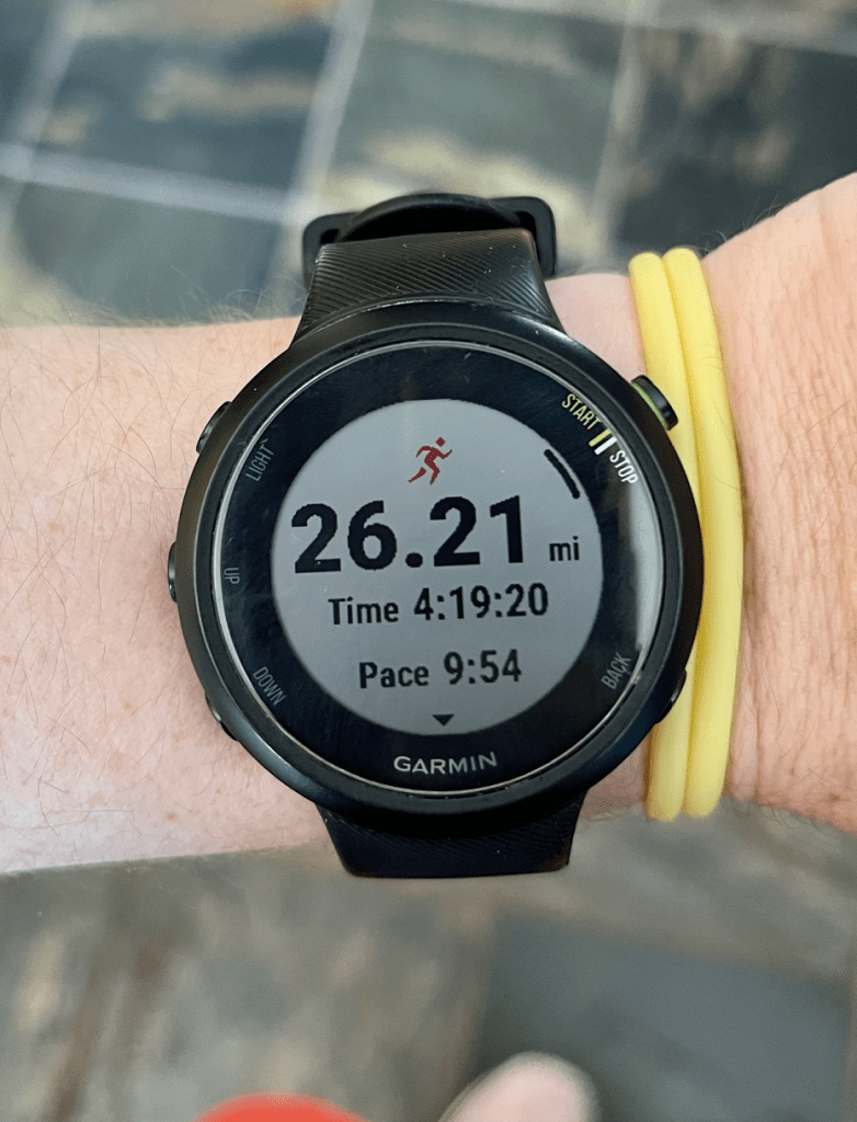 The marathon distance was not on the schedule today (it was only supposed to be 25 miles), but I was feeling good near the end and wanted to push it.