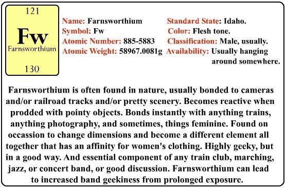 1) I am a geek. This has already been proven, but I figure the fact that I give people nicknames due to whether or not their initials make up a symbol of the Periodic Table of Elements (examples: Aneel would be Arsenic (As), I would be Curium (Cm), and you-know-who would be Lead (Pb). Nerdy nerdy geek freak.