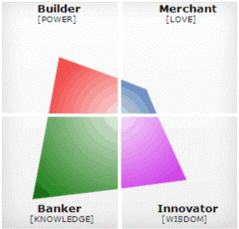 Your scores indicate you have BANKER/INNOVATOR tendencies. Your unique dominant BANKER core energy causes you to rely upon the following strategies for success and fulfillment. Your cornerstone core value is knowledge, supported by your strong desire to create justice in the world. Having the right information is important to you. You work diligently to gather resources together and save them. You like steady, solid situations with limited change. Life is easier when people and things are reasonably similar. Chaos is your enemy. People and situations should measure up to commitments. When things get messy, you may get testy. You surround yourself with facts, figures and data. Once started, you don’t give up easily. Creation without effective written plans and process description is senseless. Having all of the information is important to you, even the small things. You dislike any waste of resources. You like to be the one who knows; being right and being able to prove it is important to you. Your unique secondary INNOVATOR core energy supports your dominant BANKER core energy.