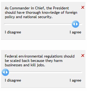 This afternoon I discovered VotingAid.com, on which there is a little quiz thingy you can use to determine which Republican candidate aligns best with your values. I decided to give it a shot.