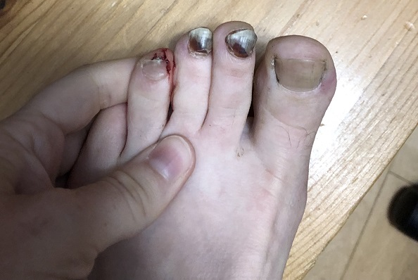 The funny thing is that all the toes on my right foot are ABSOLUTELY FINE. But there must be something about the way I walk/run that just brutalizes the toes on my left foot.