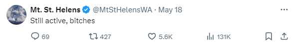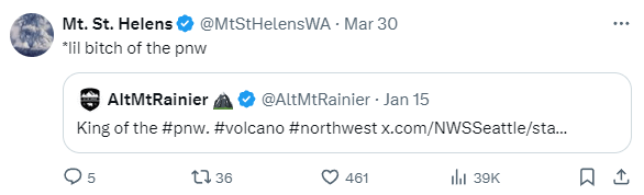Anyway, I happened upon the Twitter account for the mountain, and whoever is running it has a great snarky sense of humor.
