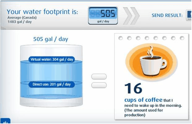 Well today I stumbled upon a website that allows you to calculate your water footprint. Again this is exactly as it sounds and, in my opinion, is even scarier in terms of the freakish amount a single human requires.
