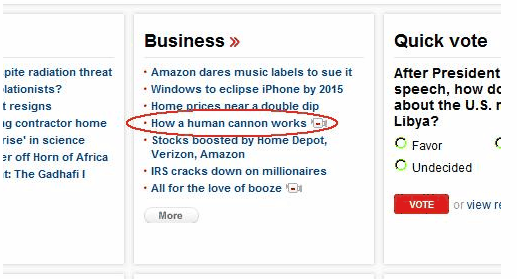 Tell me, CNN, what about this story makes it business-related news (at least the booze one was semi-business-relevant)? Are circus careers making a comeback? Should we invest in human cannons? Is Apple releasing the iCannon this summer? TELL US WHY THIS IS CATEGORIZED THERE FFFFFFFFFFFFFF